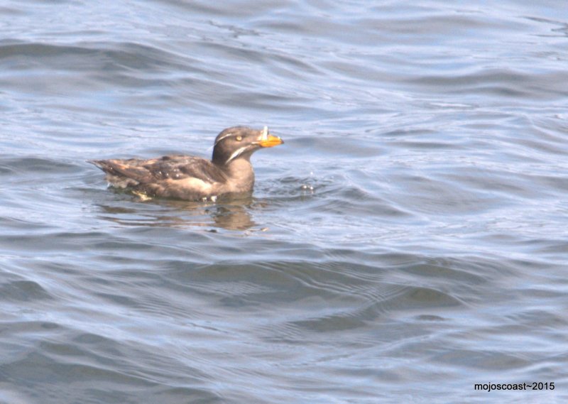 A Common Murre (Uria aalge) following a Pigeon Guillemot (Cepphus columba) out near the Farallones.